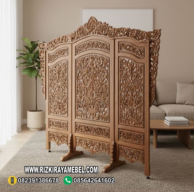 Bahan kayu yang kami pakai untuk sketsel pembatas ruang rumah ini menggunakan bahan baku kayu berkwalitas, kami memakai bahan kayu seperti kayu jati TPK Perhutani yang sudah melewati proses pengeringan untuk menghindari penyusutan kayu atau perubahan bentuk kayu.